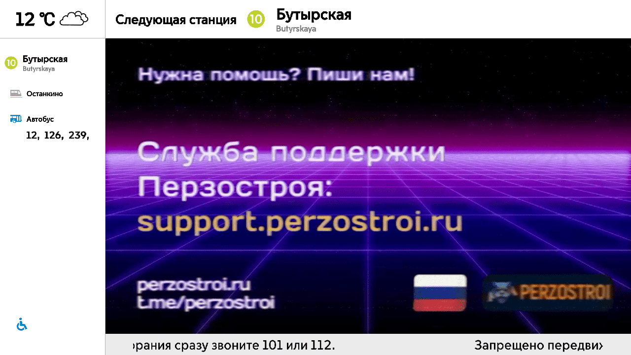 Контент синхронизирован с АС РВП, поддерживает оповещения от МЧС России и круглосуточный телеканал «Перзострой МЕТРО». Все технические требования взяты с портала государственных закупок.