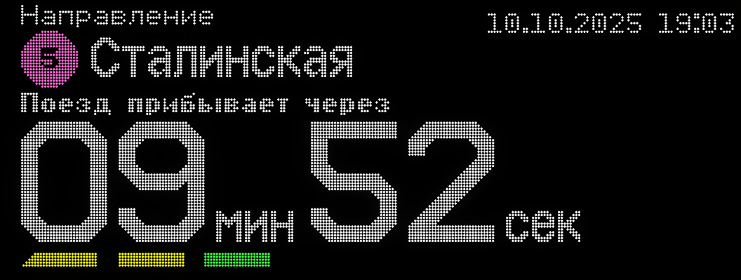 Система АС РВП построена по макетам, формулам и документации реальной инфраструктуры. Мы воссоздали оригинальные шрифты, принципы работы табло и сервер, написанный на PHP с использованием WebSocket.